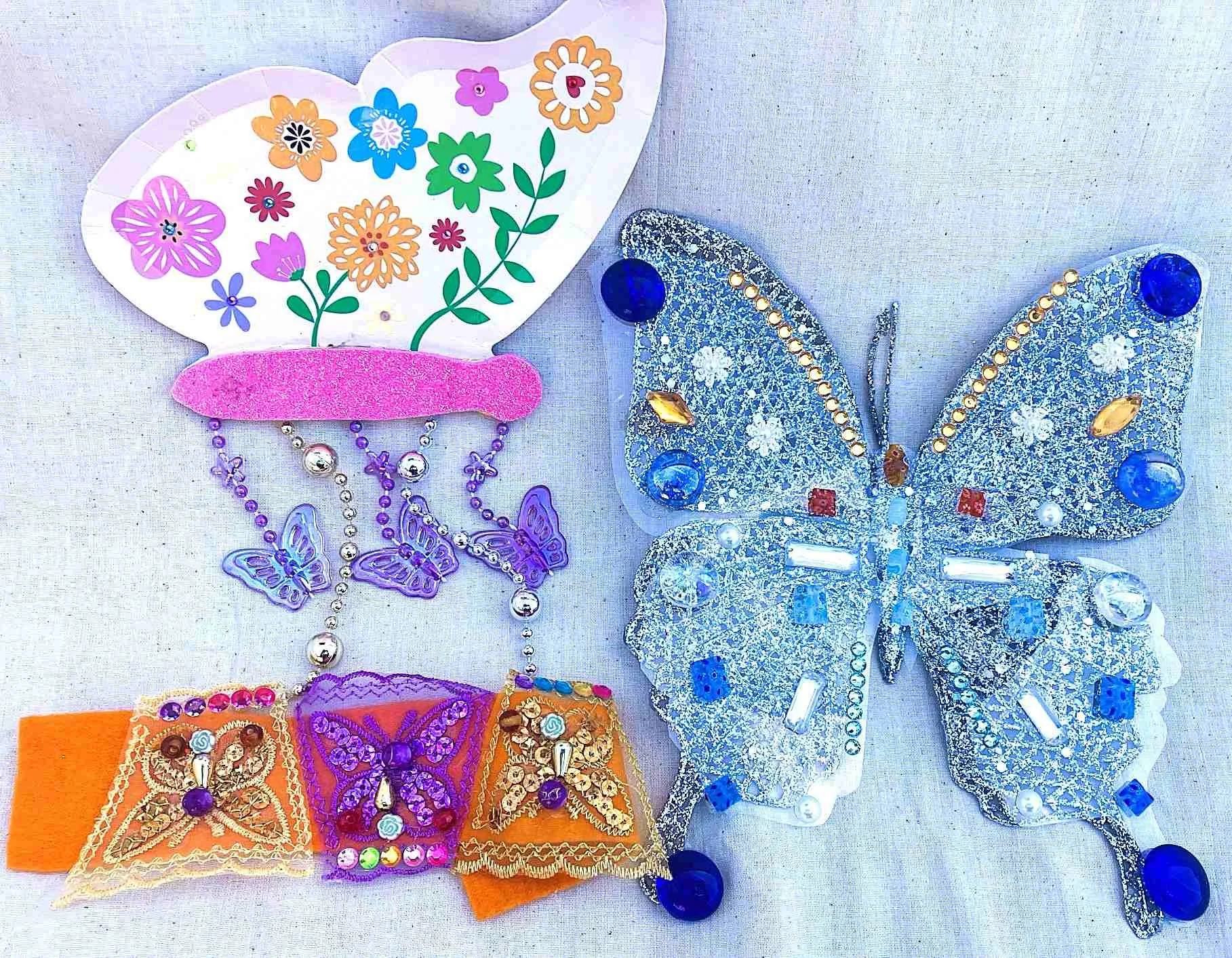 Join us for a class full of beauty, sparkle and colour. Make 3 gorgeous butterfly creations: 1. Sparkly butterfly sculpture. 2. Beaded tassel wall hanging. 3. Wearable butterfly cuff.